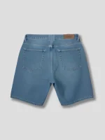 Short con corte recto, ajuste relajado en caderas y muslos que estiliza la figura y brinda máxima comodidad, dos bolsillos traseros, con cuero impactante de la marca, con botón personalizado de la marca, con un lavado muy sutil en color azul, dandole un toque mas clasico que puedes combinarlo con todo