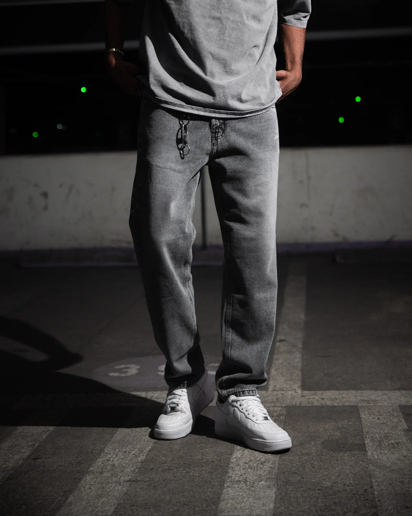 Focalizado en ambas piernas creando un contraste moderno